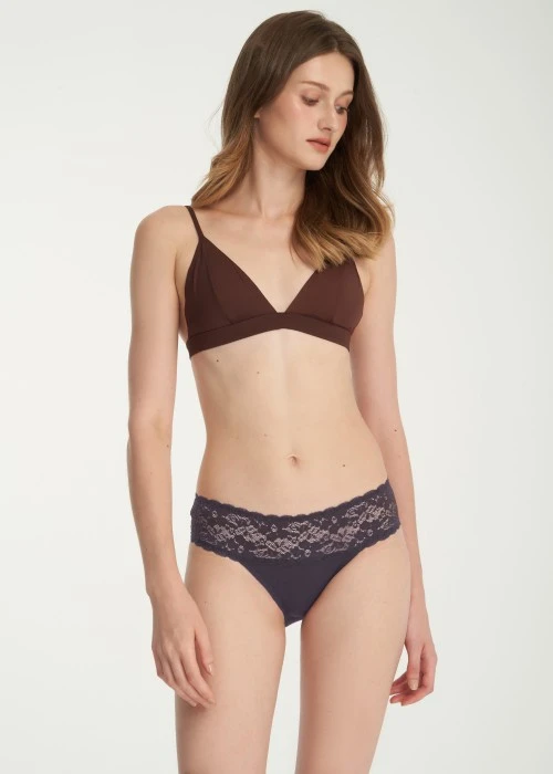 XXL 經典純色.抓皺蕾絲中腰三角內褲(黛月藍)
