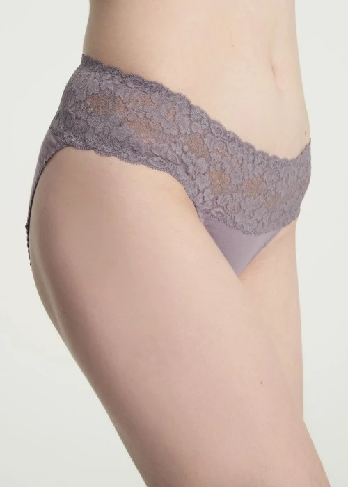 XXL 抗菌系列.抓皺蕾絲中腰三角內褲(鳶霞紫)